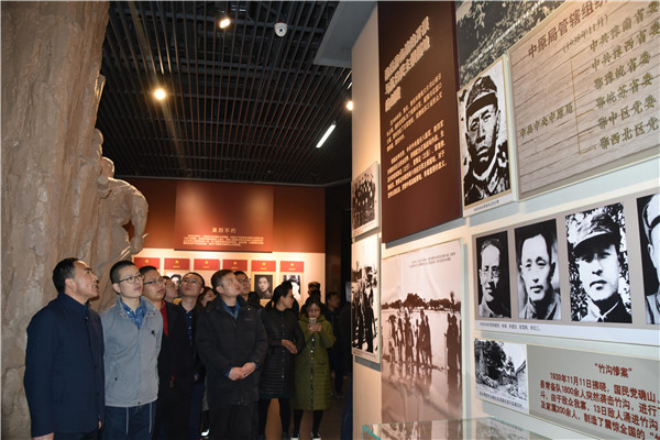 在紀(jì)念館,公司總經(jīng)理助理祁紅軍帶領(lǐng)大家參觀了星火燎原土地革命戰(zhàn)爭(zhēng)廳、抗日戰(zhàn)爭(zhēng)廳、解放戰(zhàn)爭(zhēng)廳等,瞻仰了吉鴻昌、楊靖宇、葉成煥、彭雪楓、焦裕祿、任長(zhǎng)霞等先烈們的英模,學(xué)習(xí)了先烈們一段段可歌可泣的英勇事跡。一件件珍貴的革命文物,一張張感人的歷史圖片,一個(gè)個(gè)震撼人心的故事,一幕幕驚心動(dòng)魄的戰(zhàn)斗場(chǎng)景,再現(xiàn)了中國(guó)共產(chǎn)黨在中原地區(qū)所經(jīng)歷的艱難歷程和當(dāng)年抗戰(zhàn)的烽火歲月,再現(xiàn)了中原軍民同仇敵愾、浴血奮戰(zhàn)的歷史畫卷,同時(shí)也再現(xiàn)了吉鴻昌、楊靖宇、彭雪楓等中原革命先烈的英雄事跡,以及焦裕祿、任長(zhǎng)霞等新時(shí)期為人民幸福社會(huì)發(fā)展英勇獻(xiàn)身的英雄形象。
