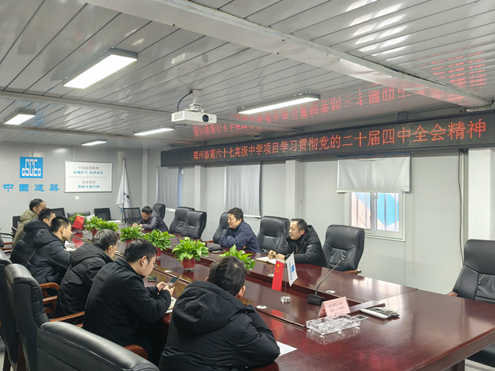 為深入學(xué)習(xí)貫徹黨的二十屆四中全會精神,引導(dǎo)項(xiàng)目人員切實(shí)把思想和行動統(tǒng)一到黨中央決策部署上來。根據(jù)集團(tuán)黨委統(tǒng)一部署,12月18日,第六十七高級中學(xué)項(xiàng)目組織學(xué)習(xí)貫徹黨的二十屆四中全會精神,項(xiàng)目部總經(jīng)理張禎棟主持并講話。