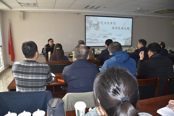 吳教授以《堅定文化自信,筑牢民族之魂》為題,圍繞文化自信的含義、牢牢掌握意識形態(tài)工作領(lǐng)導(dǎo)權(quán)、培育和踐行社會主義核心價值觀、繁榮發(fā)展社會主義文藝等四個方面進(jìn)行了專題輔導(dǎo)。他認(rèn)為文化自信是一個民族、一個國家以及一個政黨對自身文化價值的充分肯定和積極踐行,并對其文化的生命力持有的堅定信心。他歸納出讓中國人“自信”的“文化”,至少包括三個層面:中華優(yōu)秀傳統(tǒng)文化、革命文化、社會主義先進(jìn)文化。當(dāng)前我們面臨的挑戰(zhàn)和困難前所未有,境內(nèi)外敵對勢力插手意識形態(tài)斗爭的情況越來越復(fù)雜,形勢越來越嚴(yán)峻,多種勢力聯(lián)手,通過網(wǎng)絡(luò)、新媒體等各種手段,妄圖摧毀中國人的自信和共產(chǎn)黨的執(zhí)政根基。我們要按照習(xí)總書記的要求,堅持黨管意識形態(tài)原則不動搖,進(jìn)一步堅定共產(chǎn)主義理想信念,從我做起,從現(xiàn)在做起,在意識形態(tài)斗爭中做到對黨忠誠、個人干凈、敢于擔(dān)當(dāng),對一些意識形態(tài)的挑戰(zhàn)要敢于亮劍。