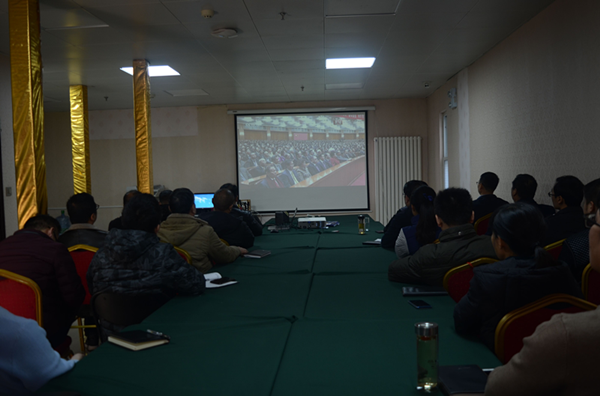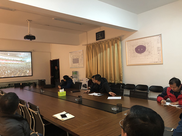 文博中心項(xiàng)目部:利用有限場(chǎng)地,通過(guò)直播平臺(tái)或手機(jī)端組織員工收看會(huì)議盛況。