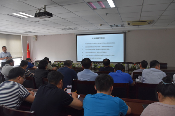 5月24日下午,根據(jù)集團(tuán)公司2019年度普法培訓(xùn)計(jì)劃要求,為大力宣傳學(xué)習(xí)新通過(guò)的《最高人民法院關(guān)于審理建設(shè)工程施工合同糾紛案件適用法律問題的解釋(二)》 (以下簡(jiǎn)稱“解釋二”),集團(tuán)公司在25樓會(huì)議室開展了《“建設(shè)工程施工合同法律適用”解讀暨職工普法工作專題會(huì)議》。集團(tuán)公司60多名員工參加了本次培訓(xùn)。